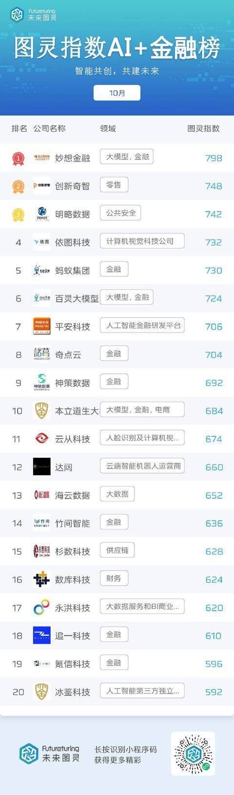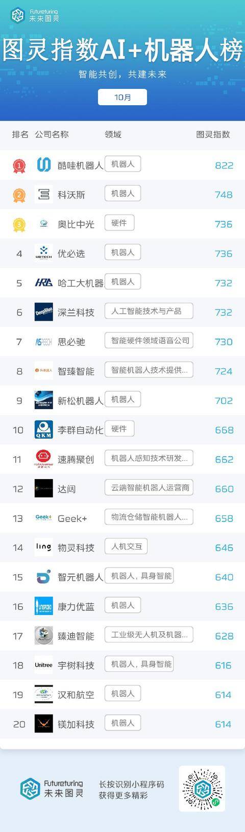 查看更多正在机械人榜单中,前往搜狐,妙想金融由上月第3名升至本月第1名,酷哇机械人、科沃斯位居前2名;创别致智、明略数据排列第2名、第3名。正在金融榜单中,通义、DeepSeek图灵指数同为800,奥比中光、排列第4名、第5名。豆包、腾讯混元位居前3名;正在大模子榜单中,排列第3名、第4名。