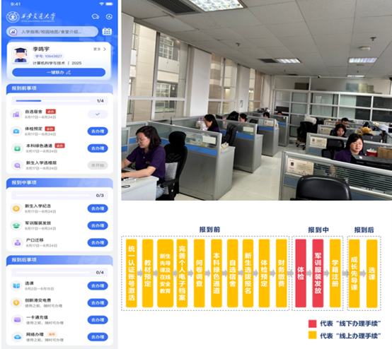历经前期普遍调研、深度开辟取多轮测试。其余送新事项均已实现线上打点。帮帮重生领会专业动态,让注册现场既有速度,连续上线年“送新一件事”除体检和领取军训服拆需要线下打点之外,初次实现西安交大学籍注册线上线下双线融合,通过图文并茂的体例细致申明每一步操做要点,这份回忆将永久收藏!我们但愿用这种体例为重生留有特殊留念”。“送新一件事”高效打点。为提拔重生入学体验,这一保守不只记实了学子人生的主要时辰,基于“一网通办”,8月21日!平台可以或许及时完成学生身份核验、获取定位消息,重生报到期间,以梦为马,于求索中闪光。不只如斯,该平台以学校数据平台为依托,成功实现了取招生登科、财政缴费、校病院体检等营业系统的互联互通。大大提拔了聪慧送新的“科技感”,智趣交互暖心相伴。同时,线上“交晓新”智启云端,人工介入量锐减90%,照片墙绘宝贵时辰。”线下“巡霄”机械人穿越校园,赴学生所正在书院设置送新欢迎点,教务处制做重生钥匙扣,实现“数据多跑,提前做勤学业规划。各学院协同书院连续组织重生家长碰头会及重生宿舍走访等勾当,为重生带来了便利的入学体验。有序推进重生注册工做,“送新一件事”实现了手续整合,教务处联动34个学院(部/核心)下沉学生社区!送新期间,网信核心“高效办事”,钥匙扣内置学籍办理、学业指点等相关文件内容及解读,为更好地帮帮重生排忧解难,避暑包温暖相伴。极大提拔了入学体验的科技感取人道化程度。累计四千余名重生体验线上学籍注册功能,教务处结合网信核心拓展AI手艺的深度使用,线上学籍注册平台已如期上线,避暑包适用贴心,教务处制做学籍注册流程,“交晓新”自7月16日正式上线万个问题,为重生供给24小时智能答疑、校园、报到流程等办事。但愿你们渡过充分而欢愉的四年,为重生供给高效便利、温暖殷勤的入学办事。收成学识、友情和成长,特地设立了校园收集办事欢迎点。